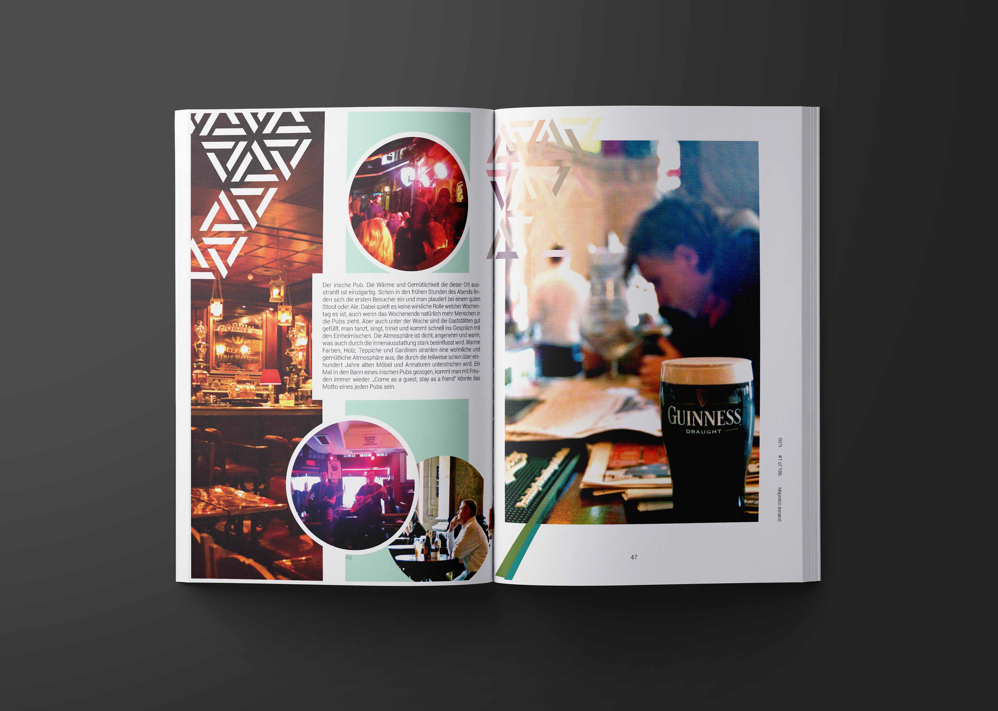 "Majestic ireland" is a documentary magazine about the irish soul, mentality and everyday life of the irish people. all material was gathered during an extensive journey across the irish island and was transformed into this ANTHROPOLOGICAL study. the design and colors were adopted from the traditional irish colors and patterns, e.g. the shamrock and the trinity knot.